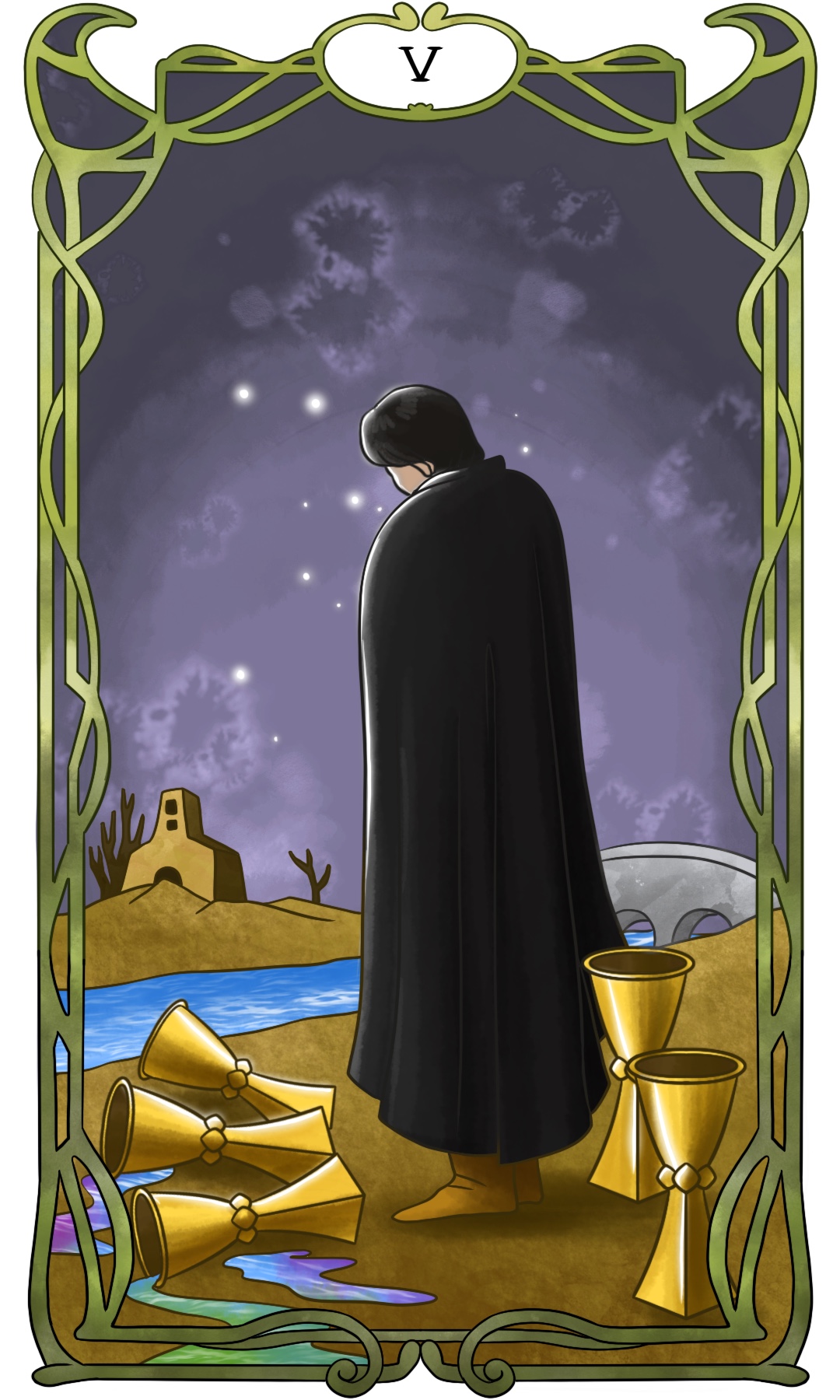 5번 컵 역방향은 모임을 통해 잃은 것이 더 크다는 것과 더불어 이제 그 무게에서 벗어날 준비가 되어 있음을 말합니다. 이는 끊는 쪽을 택했을 때 더 이상 미련이나 죄책감에 묶이지 않고 앞으로 나아갈 수 있다는 긍정적인 신호일 수 있습니다.