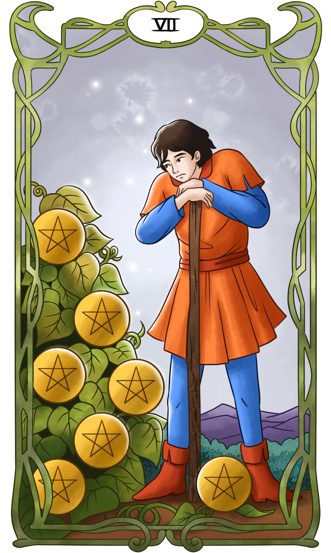 펜타클 7은 관계의 점검과 인내를 뜻합니다. 오랜 시간 쌓인 안정된 관계지만, 결혼을 앞두고 경제적 기반과 생활 패턴 등을 다시 확인할 시점입니다. 지금 결혼해도 무방하지만, 조금 더 준비한다면 훨씬 안정적인 결혼생활로 이어질 것입니다. 즉, 기다림은 미룸이 아니라 더 나은 결혼을 위한 현명한 선택입니다.