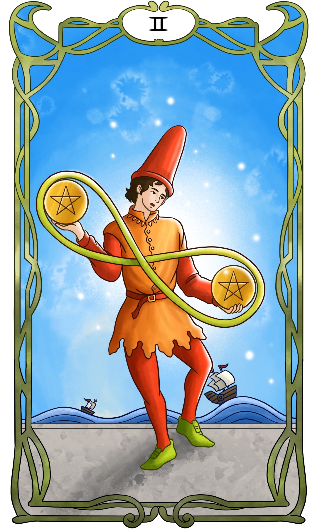 펜타클 2 역방향은 균형의 문제가 아니라 책임을 가볍게 여기고 우선순위를 의도적으로 미루는 태도를 의미합니다. 해야 할 일이 분명히 있음에도 불구하고, 굳이 지금 하지 않아도 된다는 식으로 스스로를 합리화합니다. 책임보다 편함을 먼저 두는 태도가 반복되면서 게으름이 고착화된 상태입니다.