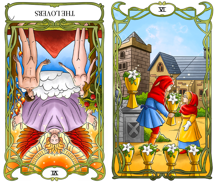 The Lovers 역방향은 연결이 느슨해지고 선택을 회피하고 있는 상태를,