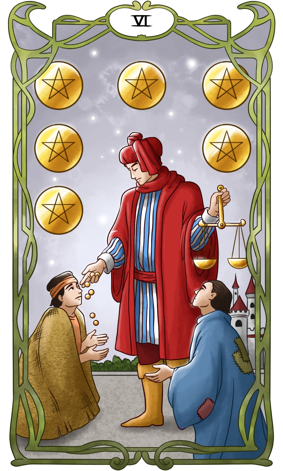 펜타클 6 정방향은 ‘주는 것과 받는 것의 균형’을 의미하는 카드로, 당신의 친절이 단순한 희생이 아니라 관계 안에서 건강하게 순환되고 있다는 것을 보여줍니다. 당신은 누군가를 도울 때도 상대를 아래로 보지 않고, 동시에 자신도 무너지지 않는 선을 지키는 사람입니다. 주변 사람들은 당신을 편하게 여기지만 함부로 대하지는 못합니다. 왜냐하면 당신의 친절에는 기준이 있기 때문입니다.
