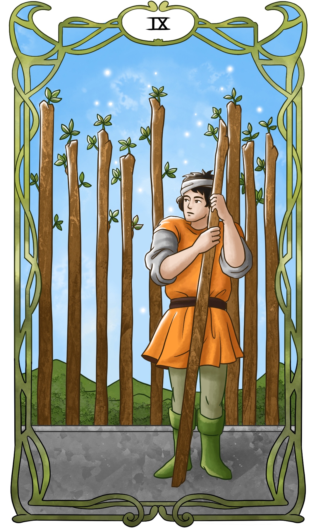 완드 9 역방향은 이미 지치고 힘든 상태임에도 불구하고 끝까지 버티거나, 필요 이상으로 상황을 감당하려는 흐름을 의미합니다. 당신은 속으로는 부담을 느끼면서도 “여기서 내가 빠지면 안 될 것 같아서” 혹은 “싫다고 하면 관계가 틀어질까 봐” 계속 받아들이는 모습을 보일 수 있습니다. 즉, 당신이 괜찮아서가 아니라 계속 괜찮은 척을 해왔기 때문에 만만하게 보일 가능성이 높습니다.